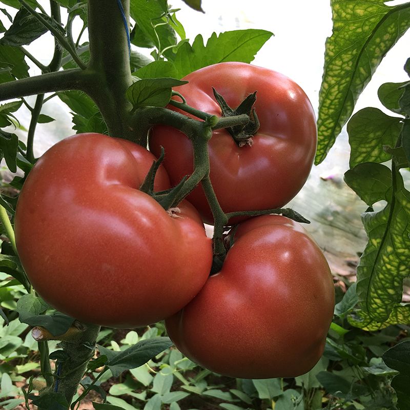 Характеристика плодов – Формирует в среднем по 6 кистей. На каждой кисти по 3-4 плода. Плоды большого размера, розового цвета, округлой формы, тянет носик, весом 220-250 г (первые кисти 300-350 г и выше). Плоды высокой плотности, отсутствует растрескивание.