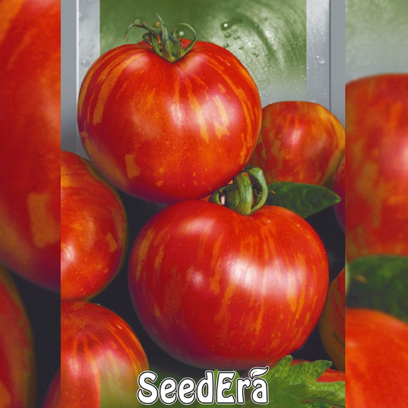 Индетерминантный, высота кустов до 1,8 м (требует подвязки к опоре). При плодоношении формирует кисти по 6-9 штук плодов. Плоды округло-вытянутой формы. Зрелые плоды имеют красно-желтую окраску с расходящимися вниз желто-оранжевыми и розовыми штрихами у плодоножки узор размывается. Вкус приятный, сладкий. Плоды очень ароматные. Урожайность до 6 кг с куста за весь период вегетации.