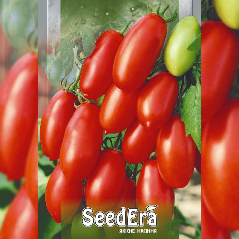 Раннеспелый (85-100 дней) индетерминантный сорт томата. Кусты требуют подвязки. Плоды имеют очень привлекательный внешний вид - похожи на огурцы красного цвета и собраны в кисти по 6-8 штук. Форма плода - сливовидная, удлиненная, вкусовые качества - хорошие. Мякоть плотная, сладковатая. Масса зрелых томатов 80-100 г. Сорт неприхотлив в уходе, болезнеустойчив. Транспортабельность хорошая. Назначение сорта - универсальное.