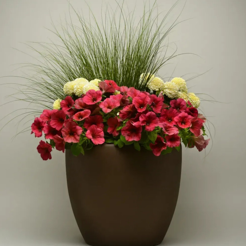 Серия сочетает в себе преимущества полуампельних (рассада занимает немного места) и ампельных гибридов (хорошо заполняет объем кашпо).