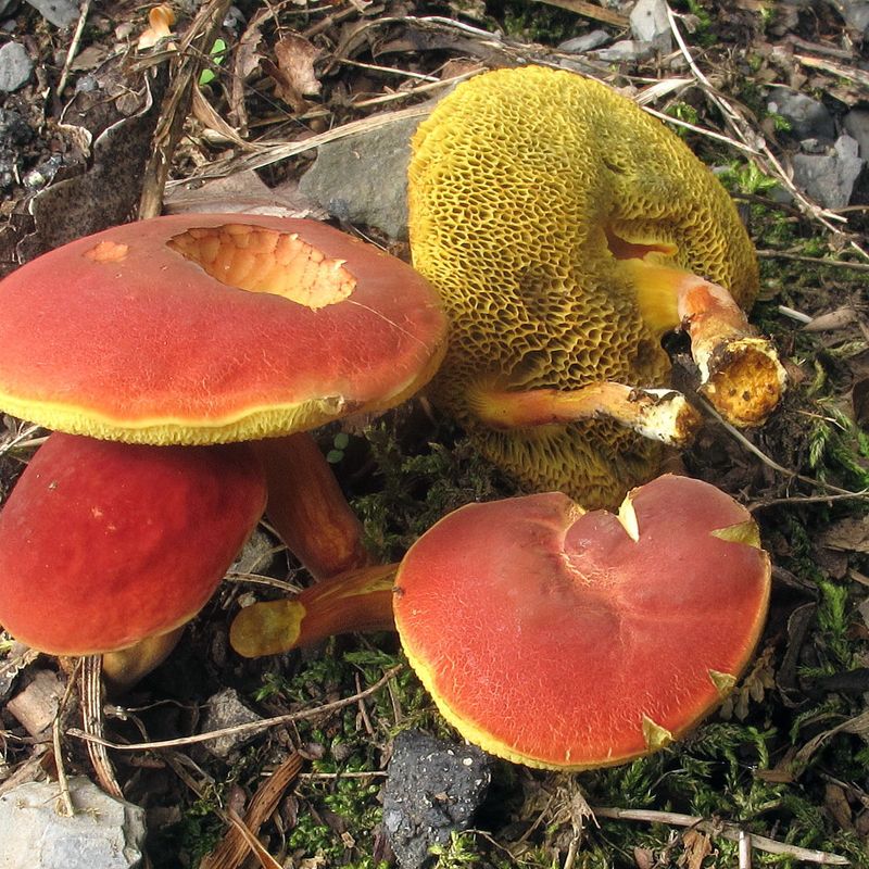 Диаметр шляпки гриба составляет от 2 до 8 см., имеет выраженную форму напоминающею подушку, окраска шляпки ярко-красного цвета с малиновым оттенком, края у шляпки имеют жёлтый оттенок. Кожица плохо отделяется от шляпки, поверхность бархатистая, могут появляться трещинки. Трубчатый слой окрашен в жёлтый цвет, со временем темнеет до оливкового, на месте надавливания приобретает синий цвет.