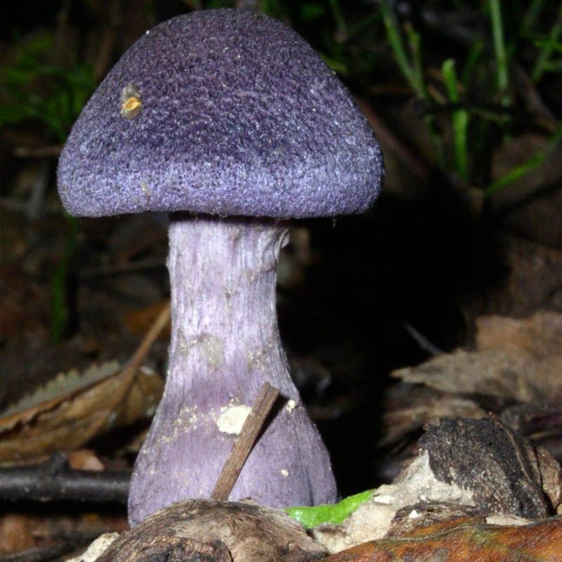 Визуально очень необычной окраски гриб, шляпка окрашена в насыщенный тёмно-фиолетовый цвет, поверхность бархатистая, покрыта мелкими чешуйками. Диаметр шляпки составляет около 15 см., по форме напоминает подушку, края заворачиваются в сторону ножки. Широкие пластинки прирастают к ножке, имеют тёмно-фиолетовую окраску. Мякоть у гриба мягкая, голубого оттенка, со временем становится бледной, практически белой, у неё ореховый привкус и нет ярко выраженного запаха. Высота ножки от 6 до 12 см., в толщину составляет 1-2 см., на поверхности в верхней части ножки покрыта чешуйками, около основания расширяется. Мякоть ножки имеет волокнистую структуру, поверхность серого или тёмно-фиолетового цвета. Споры гриба коричневого цвета.