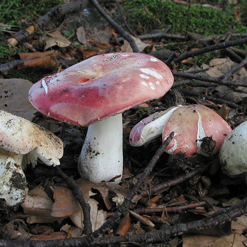 Высота ножки небольшая, составляет около 4 см., в толщине около 2 см., может расти прямой или согнутой, окрашена в белый цвет, может иметь розовый оттенок.