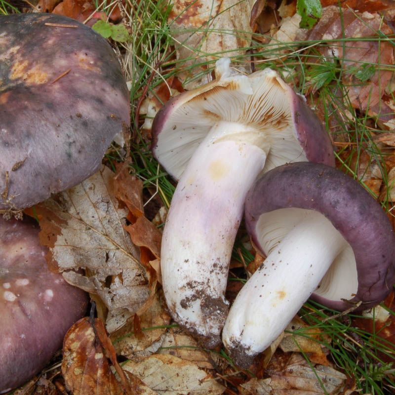 Высота ножки составляет от 5 до 12 см, в толщину от 1,5 до 3 см, у молодых грибов без полостей, у зрелых становится полой внутри, имеет белую окраску, окраска мякоти под кожицей фиолетовая с красным оттенком.