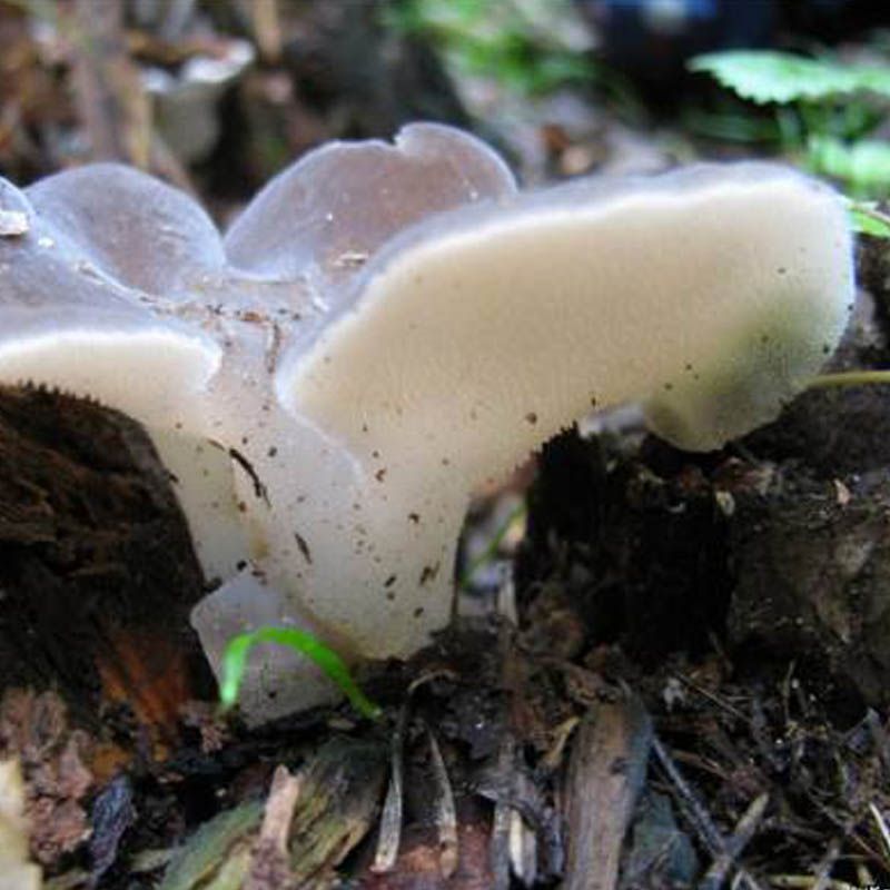 Мякоть мягкой структуры, полупрозрачная, имеет ненавязчивый запах и привкус смолы. Спороносный слой обычно белой окраски с прозрачными спорами. Форма спор бывает округлая или слегка вытянутая.