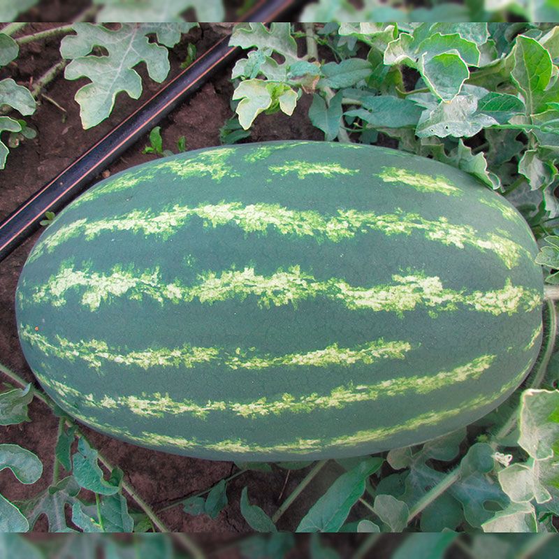 Характеристика плодов – Плоды удлиненной формы, с правильными темными полосками (тип Crimson Sweet). Мякоть темно-красная, сладкая, очень вкусная с высоким содержанием сахаров (до 13%) и мелким семенами. Средний вес плода – 13-15 кг.