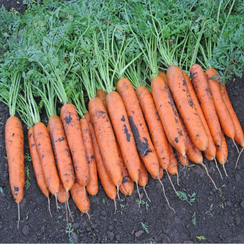 Cреднеспелый гибрид моркови, сортотип Берликум, самый урожайный из всего ассортимента, тяжелые, длинные, почти цилиндрические корнеплоды с тупым кончиком, с хорошей внутренней окраской, высокое содержание каротина, пригодный для механизированной уборки, для переработки и длительного хранения