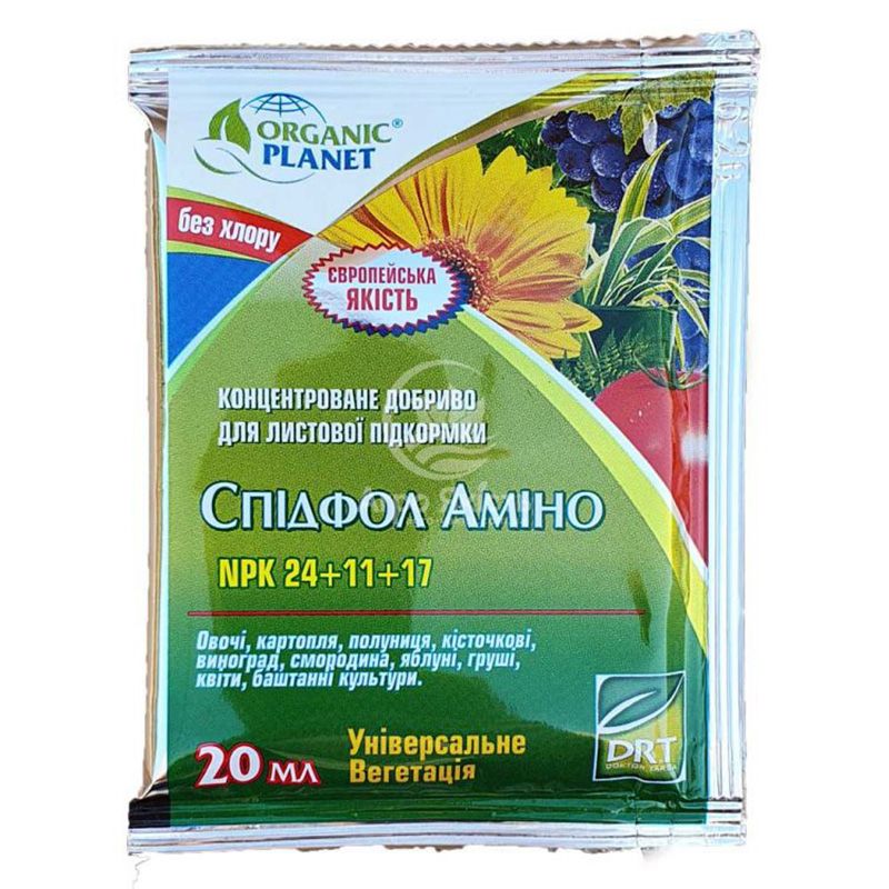 Удобрение Спидфол Амино Вегетация применяется для с/х культур в начале вегетационного периода для активизации работы листьев и быстрого роста побегов, а также после сбора урожая.