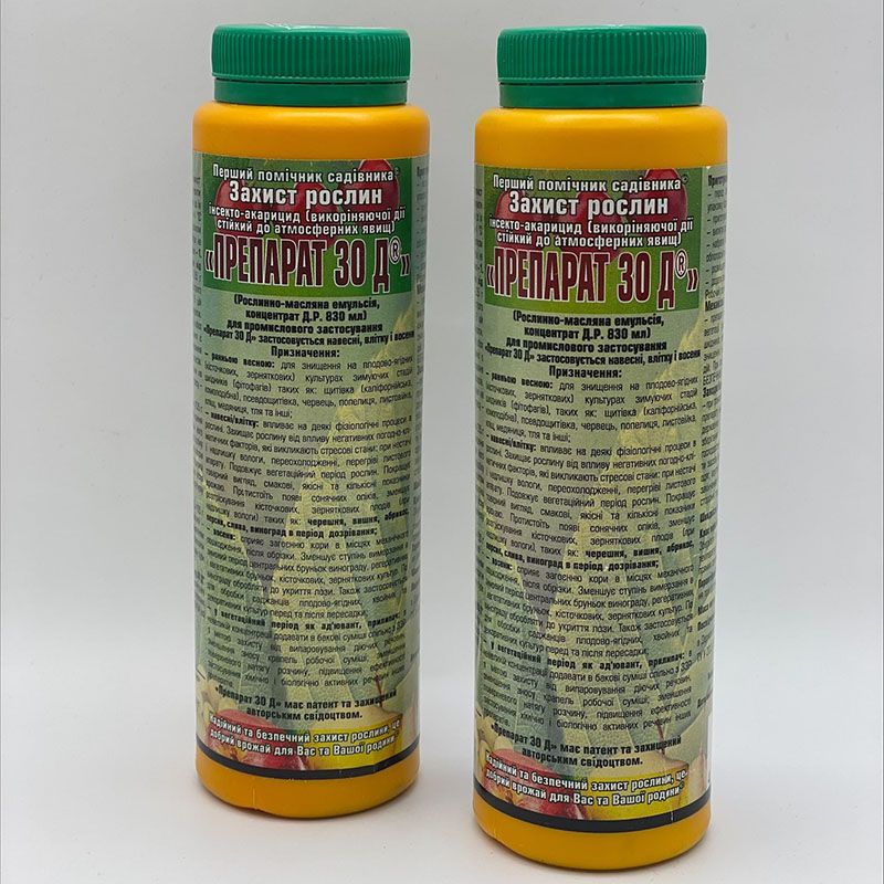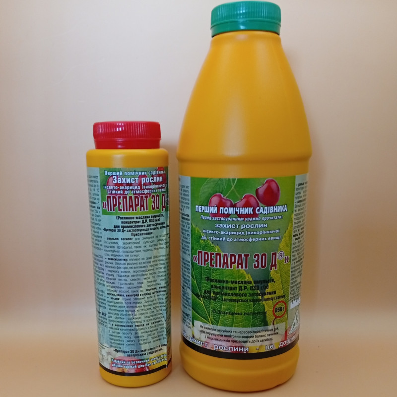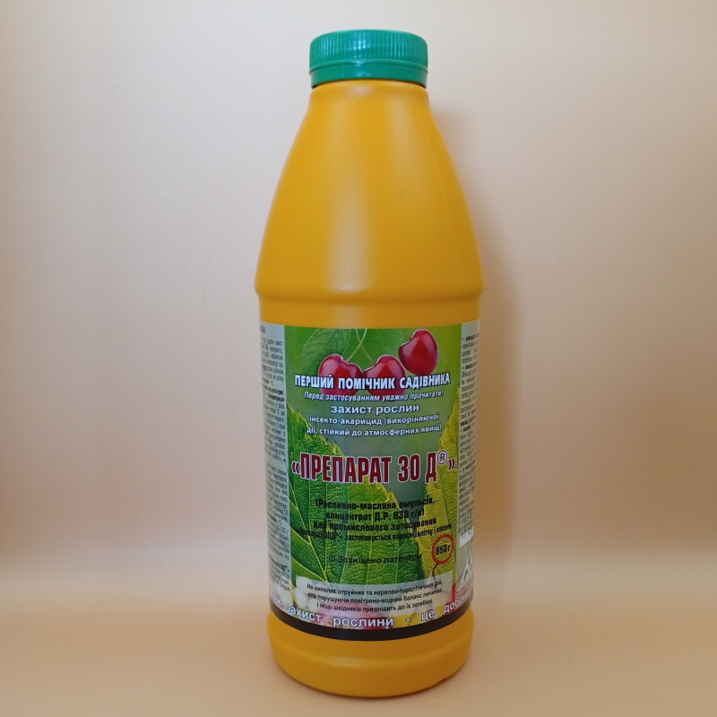 Препарат 30Д - это современная экологически безопасная технология борьбы с комплексом вредителей и профилактика болезней плодово-ягодных культур, уменьшения испарения влаги (транспирации), улучшения качества продукции и увеличения урожайности
