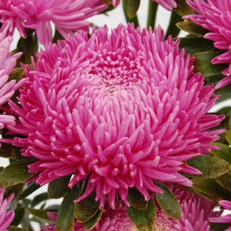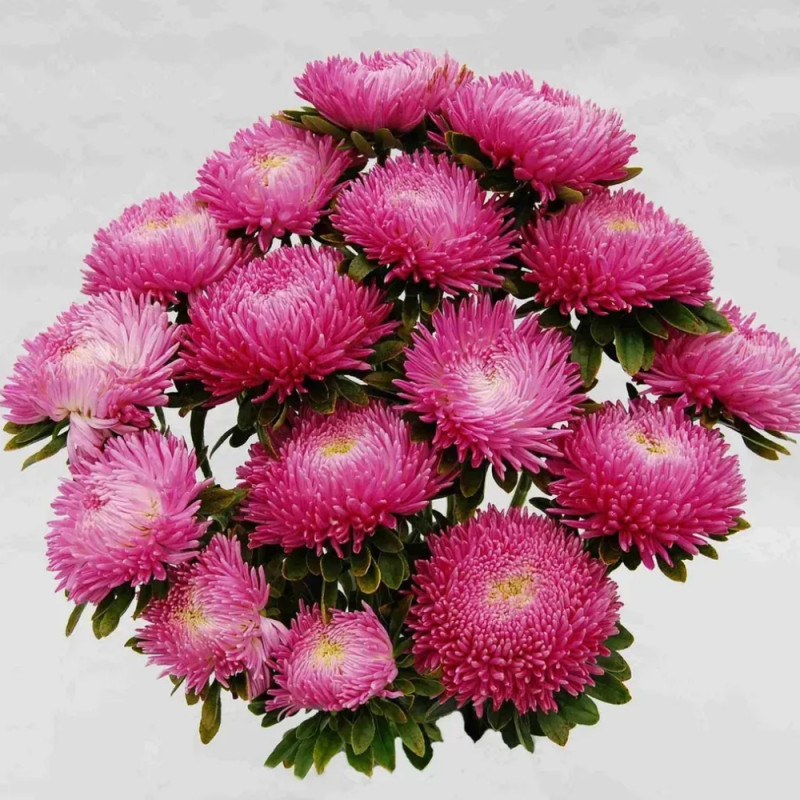 Астра Сиринга сильвер-роуз (Silver Pink) - cерия, которая завораживает чрезвычайно большими, похожими на хризантемы соцветиями, нежного розово-фиолетового цвета, диаметром 12-15 см.