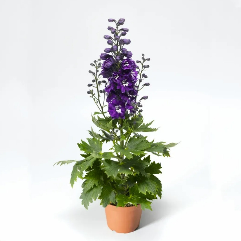 Дельфиниум Дельфина темно-синий с белым глазком (Delphinium elatum Delphina dark blue) – первый сорт очаровательного суперкомпактного дельфиниума.