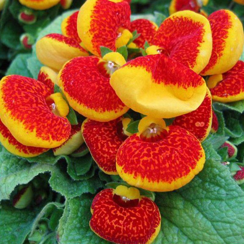 Кальцеолярия Данти F1 красно-желтая – однолетнее растение с яркими двугубыми цветами.