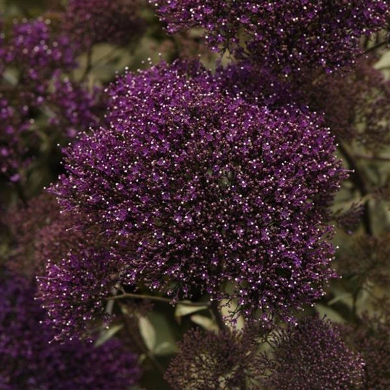Цветочки мелкие, трубчатые, красиво раскрываются в пятилепестковую звездочку в диаметре 6 см, собраны в густые шапки пурпурного окраса. Обладают сладковатым и приятным ароматом ванили.