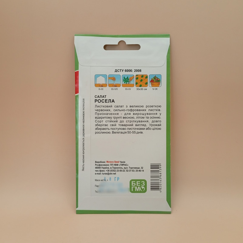Данный вид салата является видом с сильно гофрированными листьями. Предназначен для открытого грунта, универсален во времени выращивания. Устойчив к стрелкованию, обирается как по одному листку так и кустом. Время от посева до сбора урожая 50-55 суток. Оптимальная схема высадки 30х30 см.