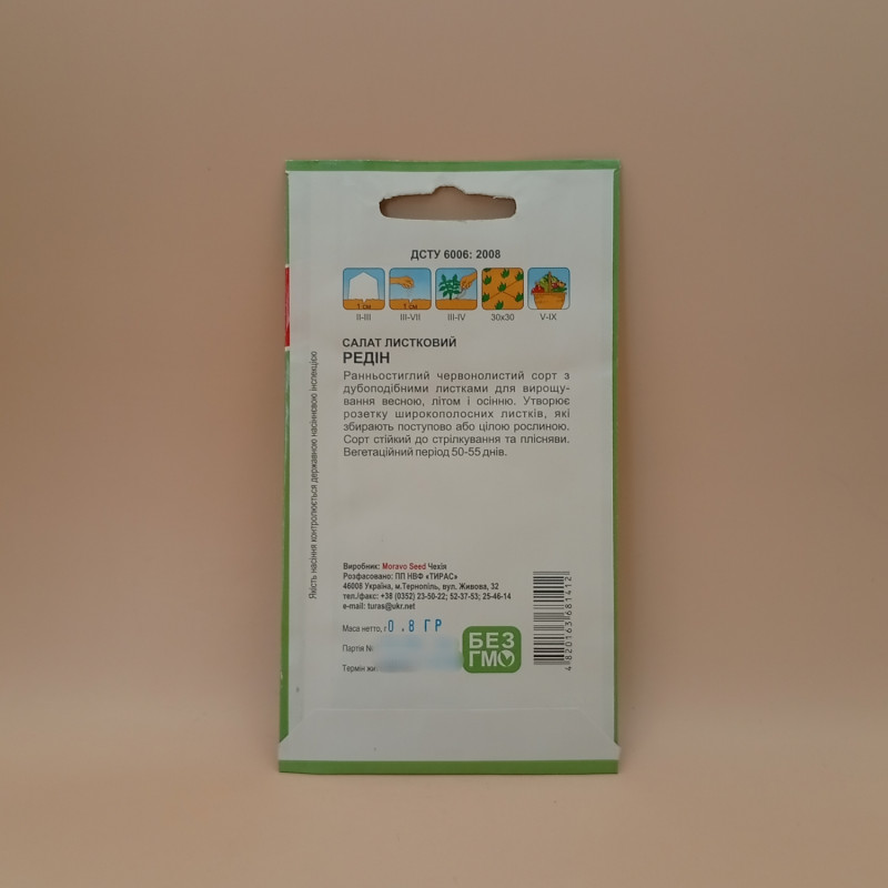 Краснолистный салат с листьями типа "дубовых" для выращивания весной, летом и осенью. Образует розетку красных широкополосных листьев. Собирают отдельные листья или целые растения. Сорт устойчив к стрелкованию. Вегетационный период от посева 50-55 дней. Рекомендуемая схема высадки 30 x 30 см.