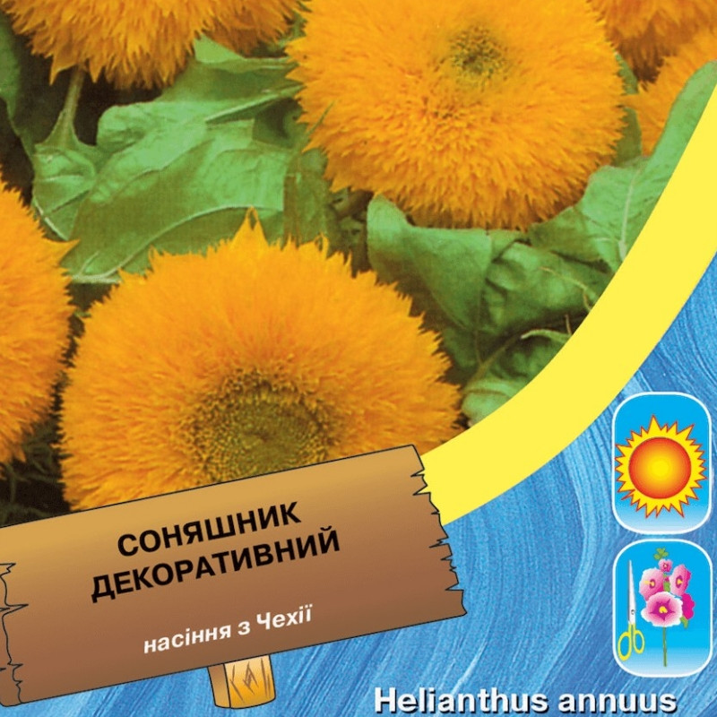 Подсолнечник декоративный высокорослый – однолетнее растение с желтыми махровыми цветами.