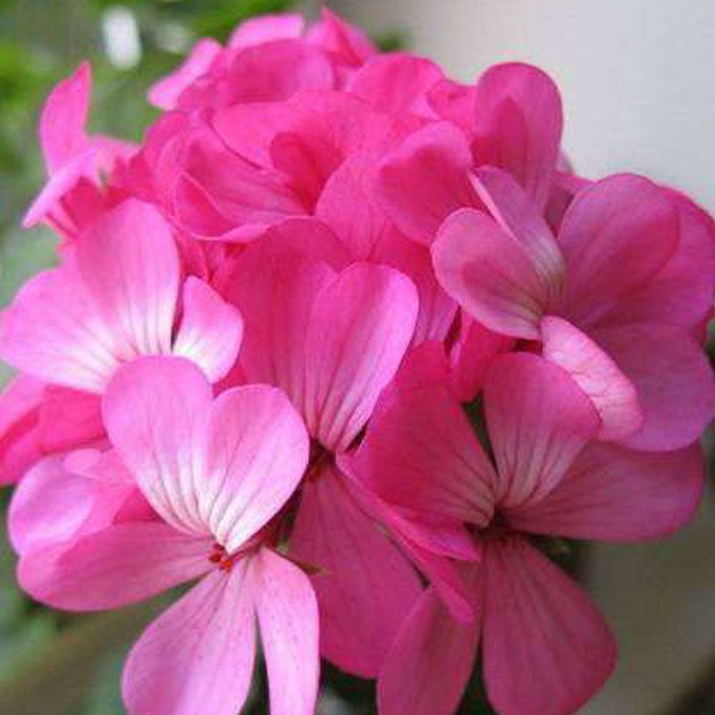 (Pelargonium zonale (hybrids luster)) Многолетнее, светолюбивое и относительно холодостойкое растение. Цветы розового цвета, собраны в пушистые соцветия. Подходит для окон, балконов, всех типов садових ваз и кашпо. Зимой необходимо сохранять в светлых теплых местах. Семена высевают в теплицы с декабря по февраль в контейнеры с влажным грунтом. В качестве субстрата используют чистый торф или смесь торфа с песком. Температурный режим +10 - +20С. Систематический полив растений. Всходы прорастают на 2 – 3 неделю. Во время появления всходов снять укрытие. В фазе двух – трех листиков рас саду высаживают на постоянное место. Растение светолюбивое, но выдерживает и полутень.