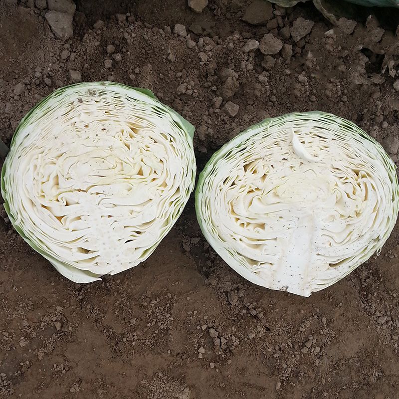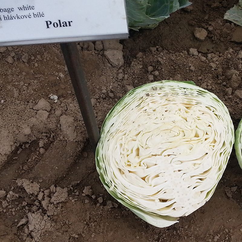 Характеристика плодов – Кочан размером от среднего до большого, весом 3-5 кг, в разрезе белого цвета. Наружные листья серо-зеленой окраски. Обладает стойкостью к растрескиванию.