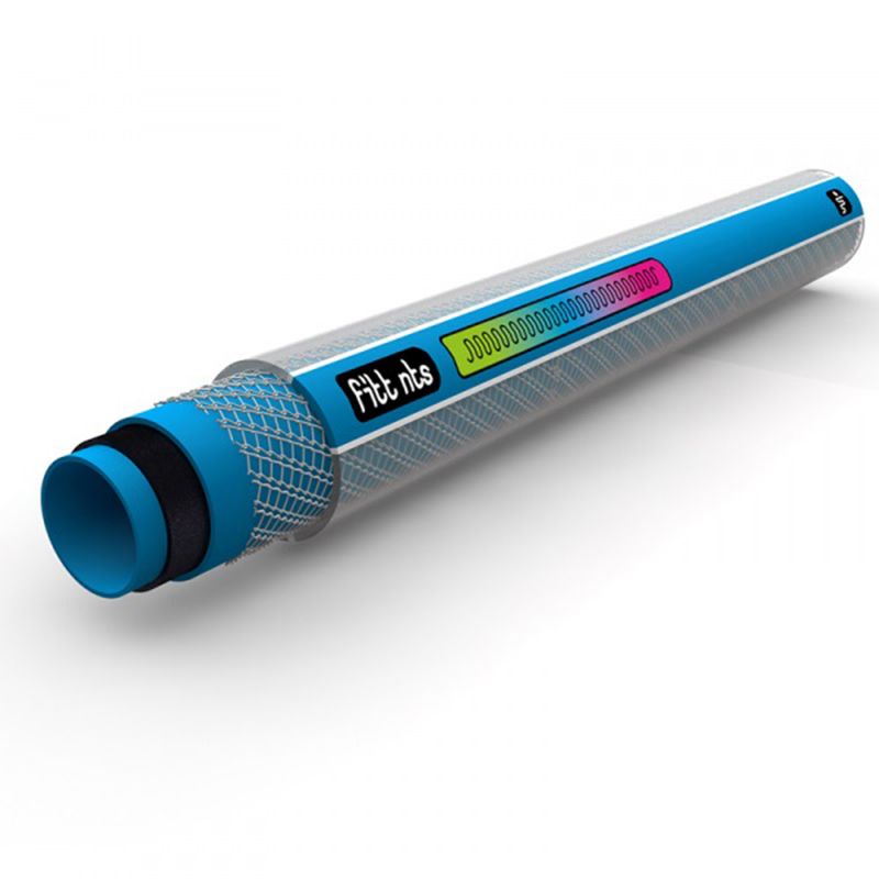 6-слойный конструкционный шланг имеет синий внутренний слой, черный слой против водорослей, синий промежуточный слой, текстильное армирование NTS, прозрачное наружное покрытие, фольга SKYTECH со специальной формулой против УФ-излучения, которая предотвращает старение шланга и придает ему особую форму.
