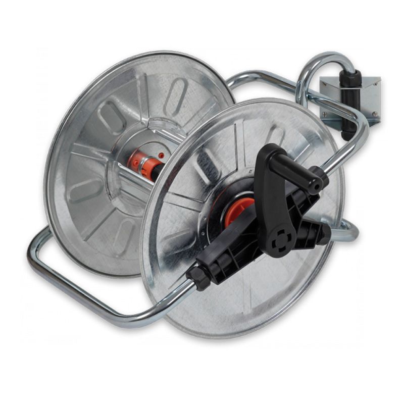 Имеет поворотное крепление и вмещает до 50 метров шланга 1/2".