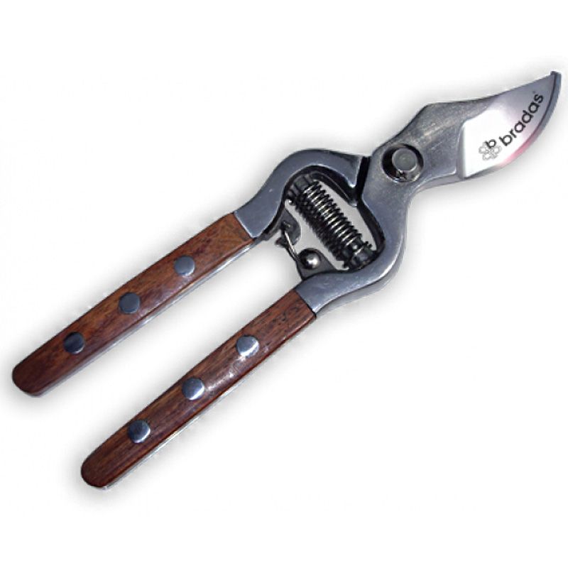 Крепкие деревянные ручки выполнены в ретро-стиле, что придает секатору особую оригинальность.