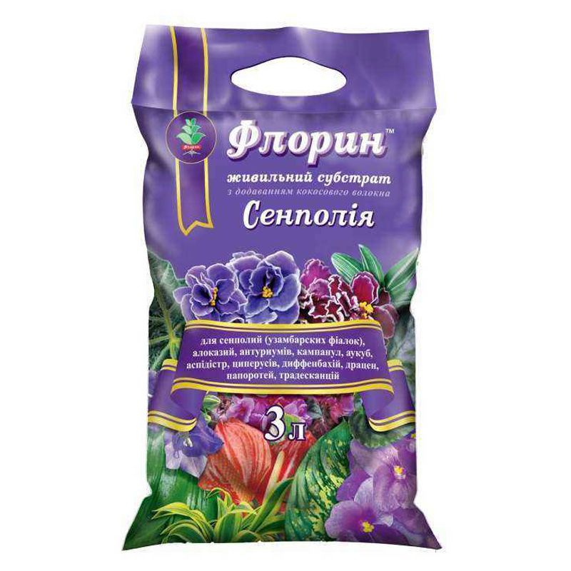 Флорин Сенполия - данный субстрат предназначен для сенполий, алоказий, антириума, кампанул, аукуб, аспидистр, цинерусов, диффенбахий, драцен, папоротников, традесканций.