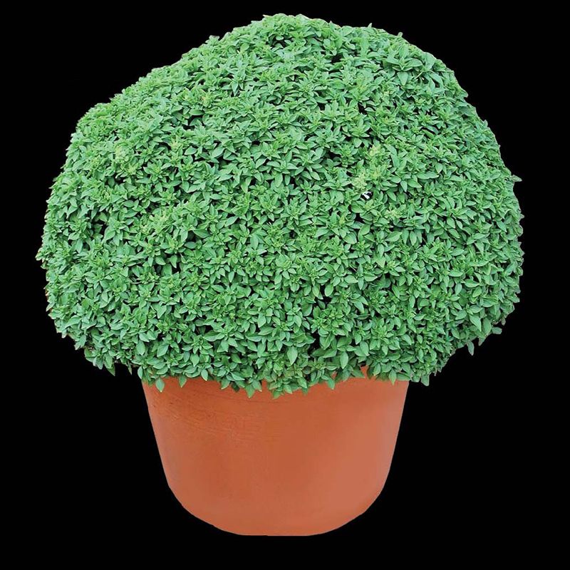 Базилик зеленый тонколистный имеет маленькие, яйцевидные, блестящие листья, примерно в два раза меньше сладкого базилика. Цветки мелкие, душистые и беловатые. Отлично подходит для выращивания в горшках. Высота растения 40-50 см.