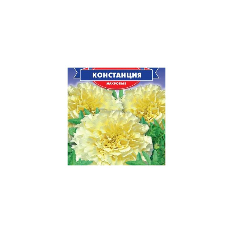 Бархатцы Констанция - однолетнее растение. Стебли прямостоячие, высотой до 25 см. Соцветия до 6 см в диаметре, ярко-оранжевой окраски с коричневыми пятнами.
