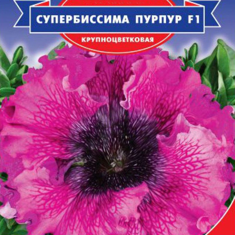 Петуния Супербессима Пурпур F1 грандифлора гофрировано-бахромчатая – однолетний популярный гибрид низкорослой петунии.