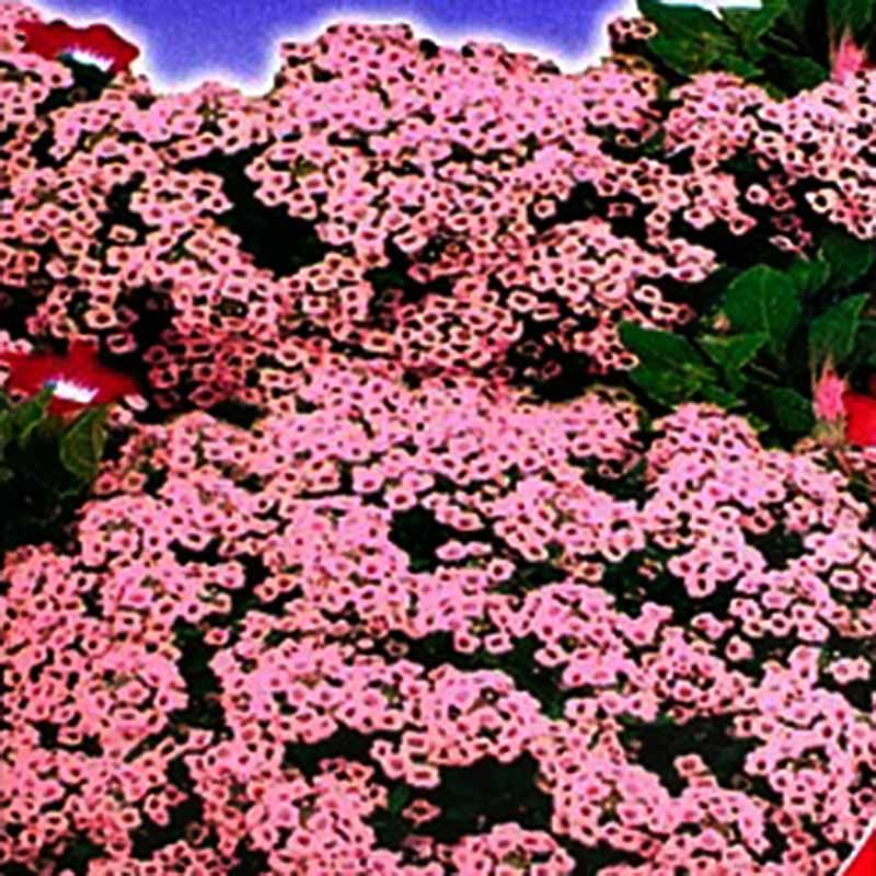 Алиссум Горная сказка розовая – эффектное, миниатюрное, стелющееся, обильно цветущее растение. Оно образует душистый ковёр нежно-розового цвета.