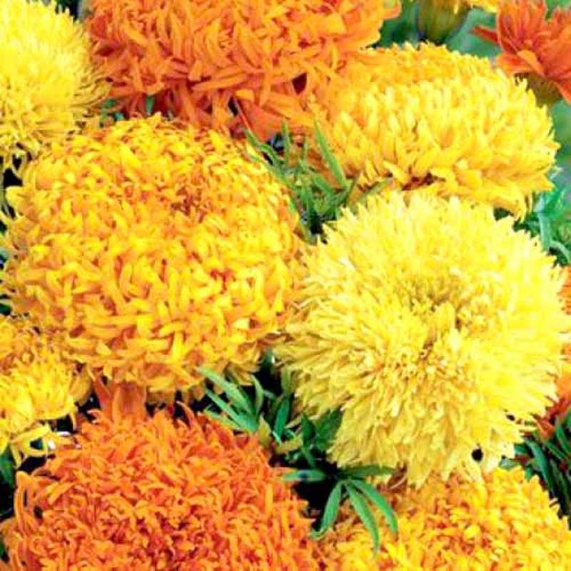 Бархатцы Фантастик Mix - компактный, относительно морозостойкий однолетний вид, высотой 65-80 см, с исключительно декоративными соцветиями у которого одиночные золотисто-желтые цветки загибаются к центру корзинки. Неприхотлив в выращивании, подходит любая садовая почва и солнечное место.