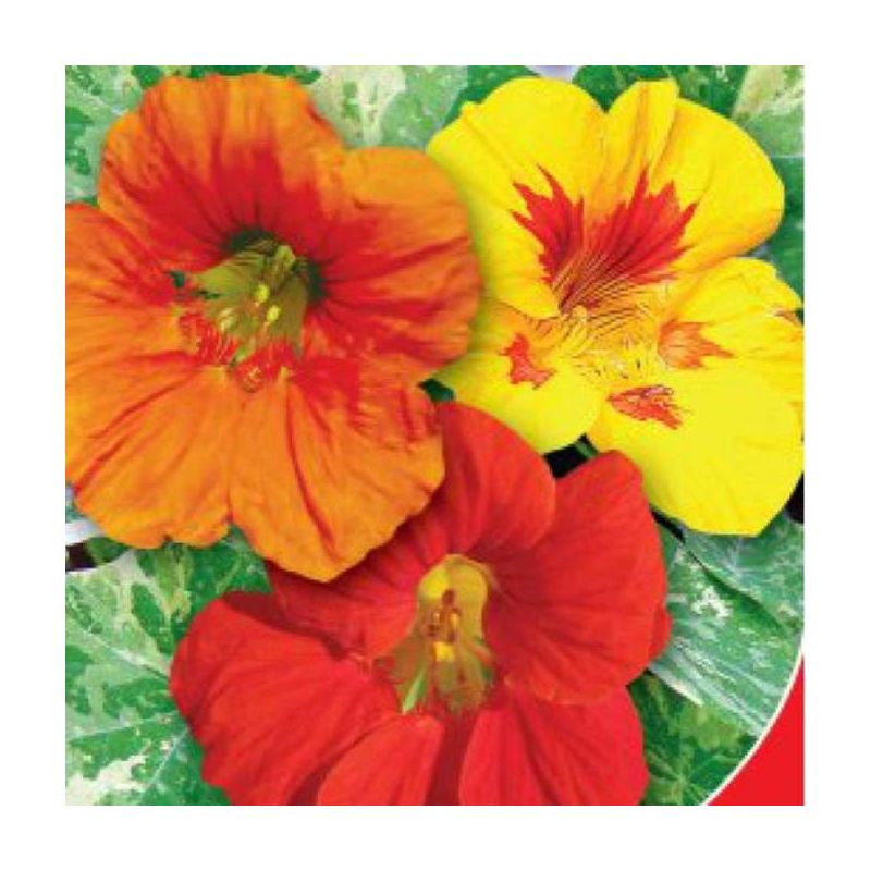 Настурация Аляска - низкорослый сорт настурции. Растение сформировало куст шарообразной формы высотой 40 см. Листья – ярко-зеленого цвета.