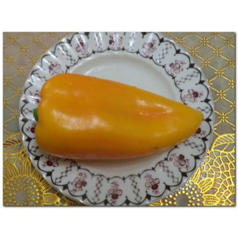 Новый интересный высокоурожайный авторский сорт среднего (125-130 дней) срока созревания. Куст высокорослый (до 1 м), прочный, устойчивый на корню. Плоды от светло-зеленого до золоисто-оранжевого цвета, конусовидные, крупные, длиной до 20 см, весом 200-250 г.