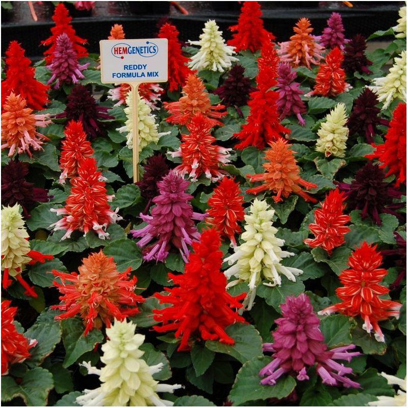 Сальвия Редди смесь (Salvia splendens Reddy mix) – серия, которая является природным карликом таким, как серия петунии Мамбо и Лимбо.