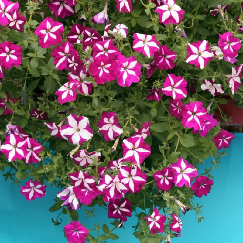 Лавина F1 пурпурная звезда – однолетняя ампельная петуния для посадки в балконные контейнеры и подвесные кашпо, особенно в сочетании с другими гибридами этой серии.