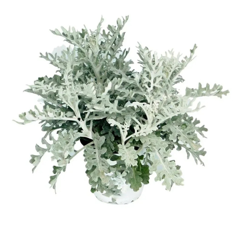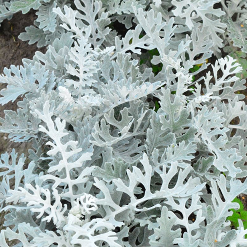 Цинерария Сильвердаст (Cineraria maritima Silverdust) – растение высотой 20-25 см с глубоко рассечёнными серебристо-белыми листьями.