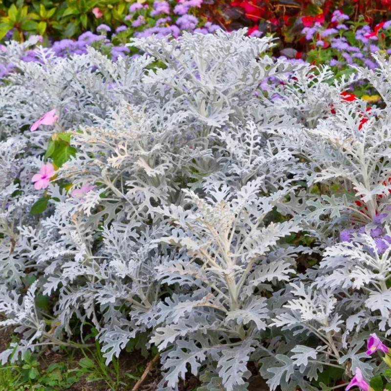 Эффектно обрамляет клумбы, серебро листьев красиво оттеняет растения с красными, розовыми или пурпурными цветами.