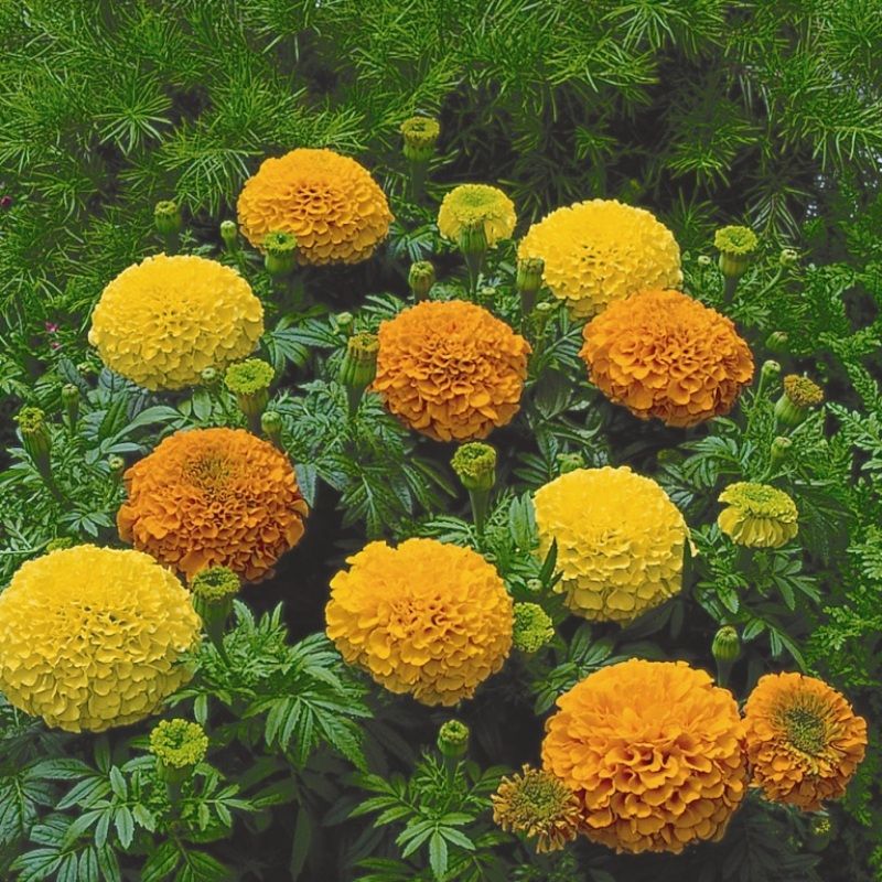 Бархатцы Инка 2 F1 смесь (Tagetes Inca 2 F1 mix) – это среднерослые бархатцы, характеризующиеся ранним цветением и невысокой чувствительностью к длине дня.