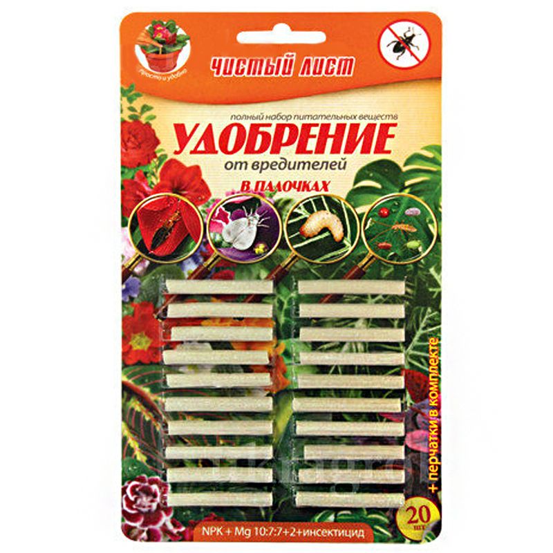 Чистый лист от вредителей - инсектицидный препарат (против насекомых вредителей) с добавкой минерального удобрения.