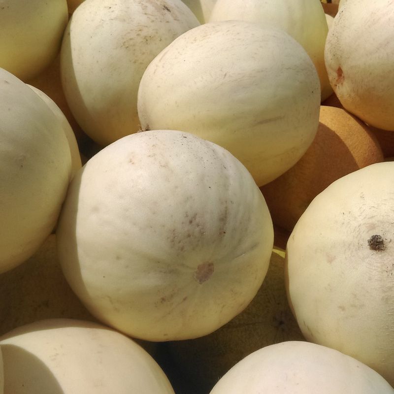Плод округло-овальной формы, гладкий, весом 2,2 кг. Мякоть зеленовато-белая, сочная, невероятно сладкая и ароматная.