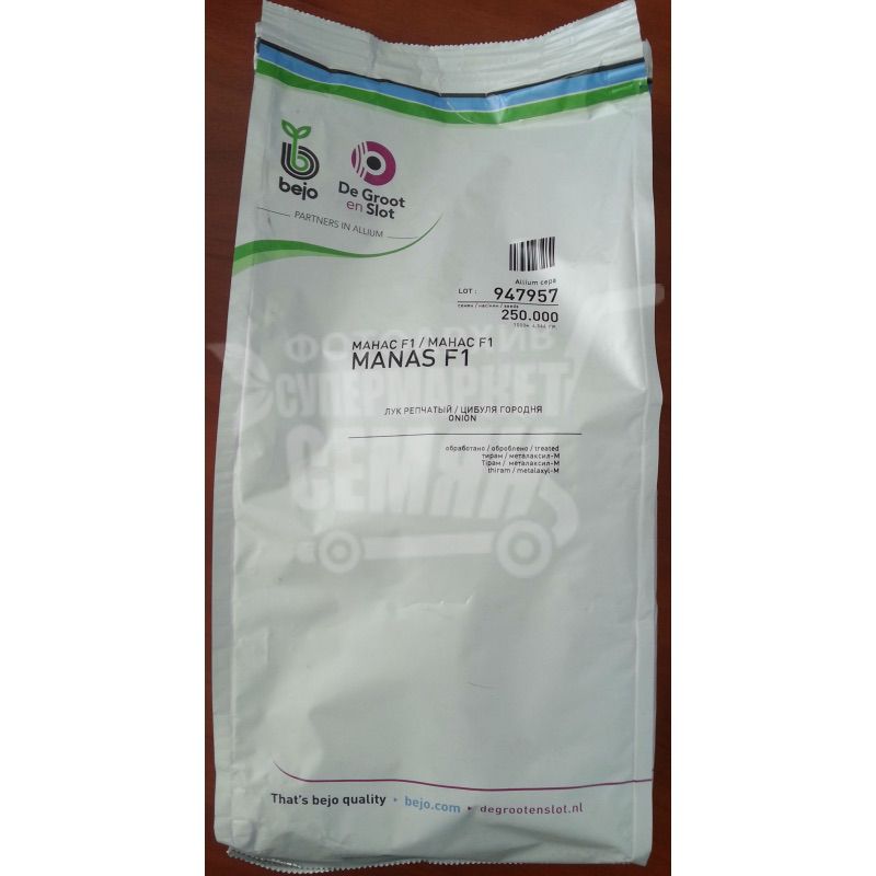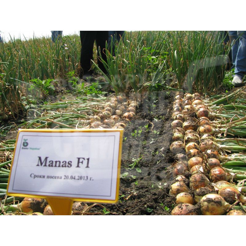 Манас F1 - гибрид лука репчатого (до 115 дней). Высокоурожайный, среднеспелый. Плоды плотные, округлые, имеют белую мякоть.