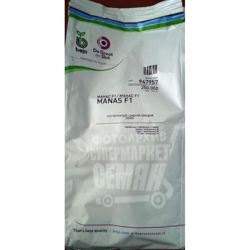 Манас F1 - гибрид лука репчатого PR. Растение высокоурожайное, среднеспелое (до 115 дней). Плод плотный, покрыт верхней ярко-бронзовой чешуей; обладает белой мякотью.