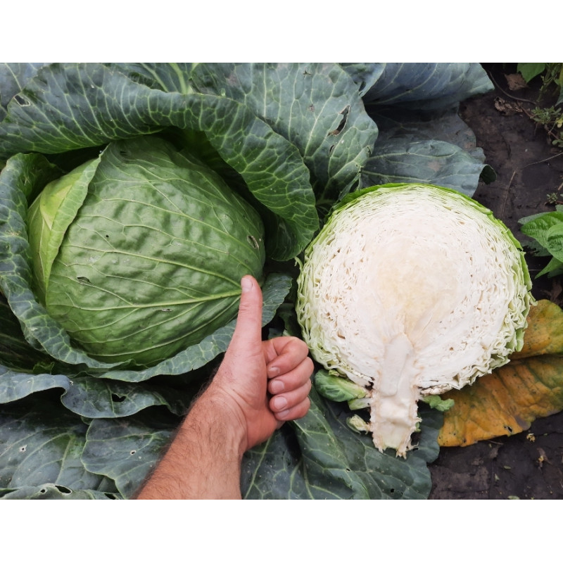 Кочаны приплюснуто-округлые, плотной структуры, белого цвета в разрезе, весом не менее 4-ех килограмм.