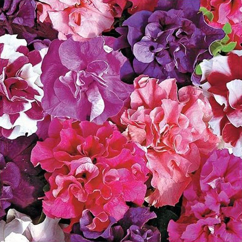 Петуния Восхитительная смесь F1 (Чудесная смесь) грандифлора махровая (Petunia grandiflora hybrida Glorious Mixture) – это яркий микс одно- и двухцветных больших махровых цветов.