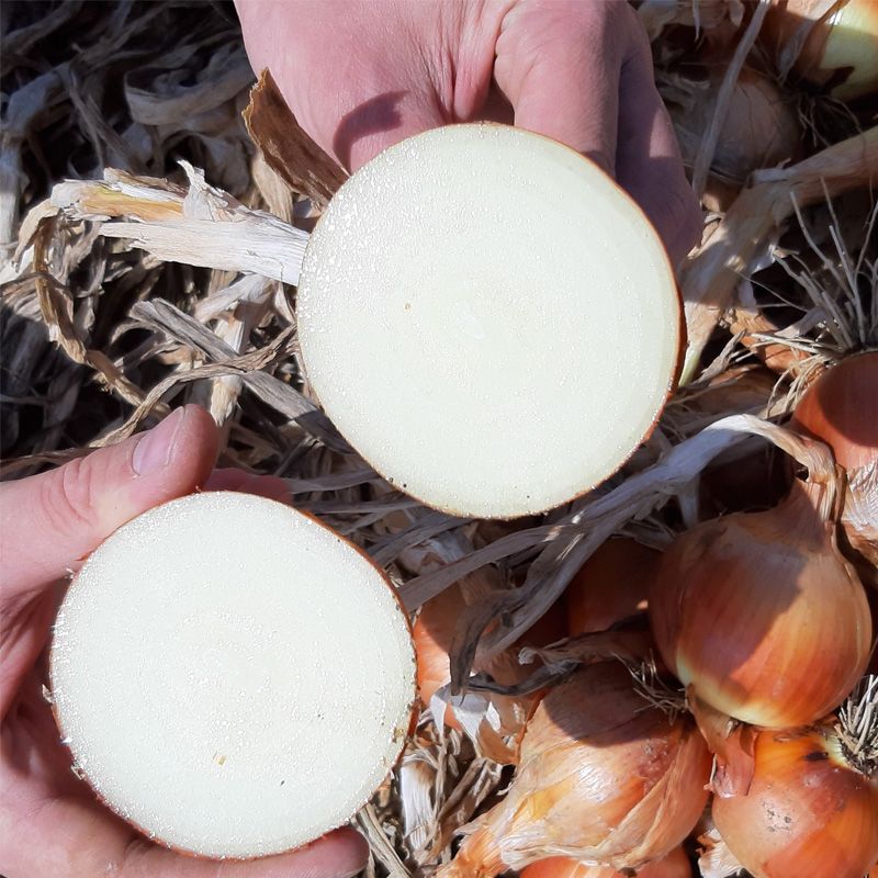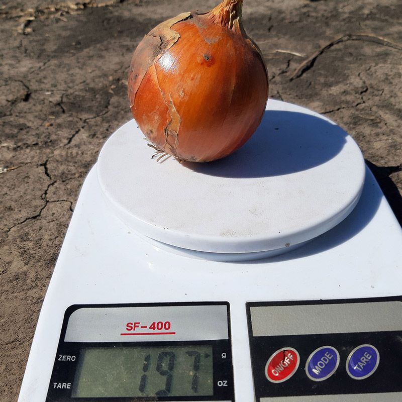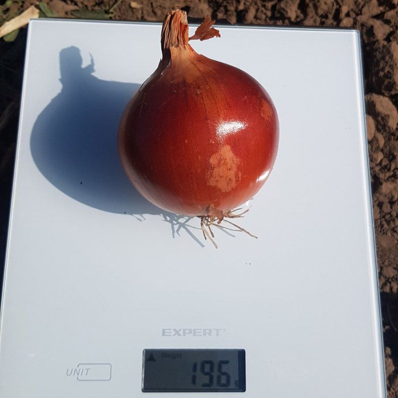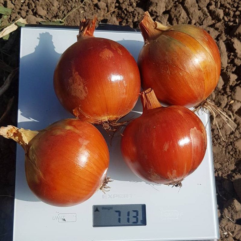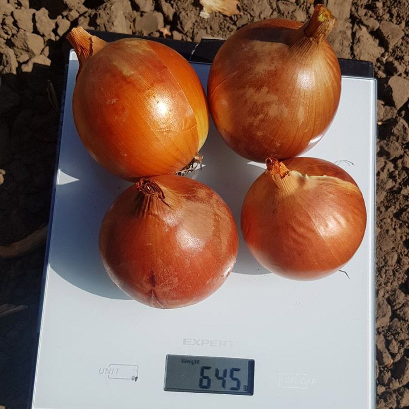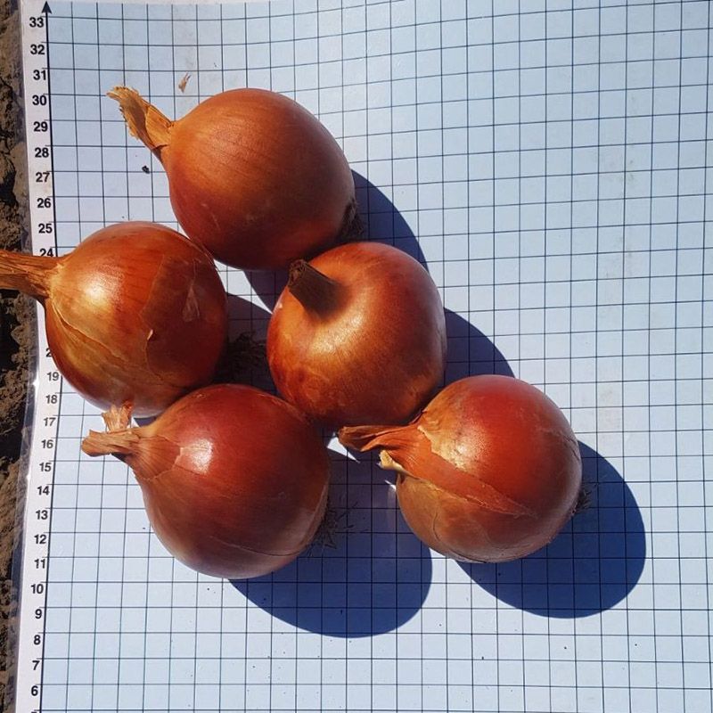 Характеристика плодов – Луковица округлой формы, темно-медного цвета, имеет тонкую шейку. Средняя масса луковицы 140-200 г, содержание сухих веществ более 13%.
