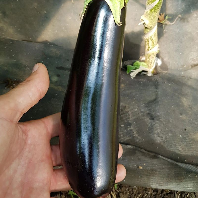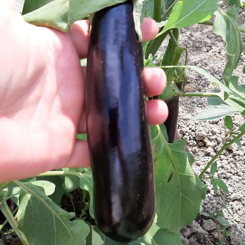 Характеристика плодов – Плоды темно-фиолетового цвета, цилиндрической формы, глянцевые, средняя масса – 200-350 г. Длина плода – 19-22 см, диаметр – 7-8 см. Мякоть белая, плотная, без горечи. Плодоножка ярко-зеленого цвета, шипы отсутствуют.