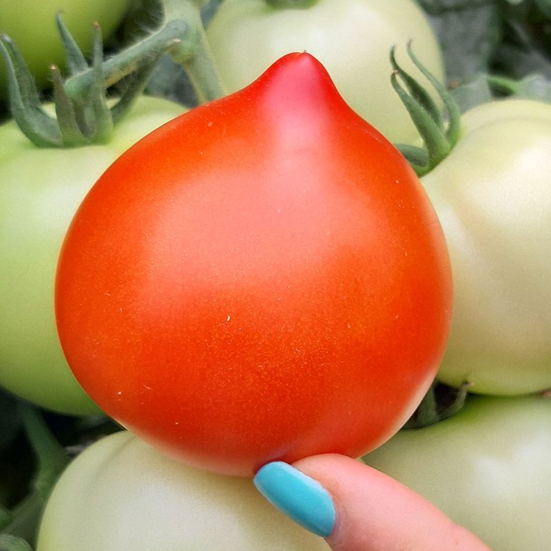 Характеристика плодов – Плоды округло-плоской формы, темно-красного цвета, формируют четко выраженный «носик». В кисти формируется 5-7 плодов, средней массой 200-220 г, очень плотные. Плоды имеют отличные вкусовые качества.
