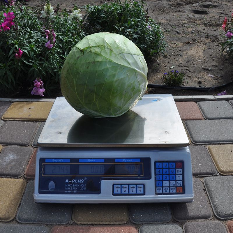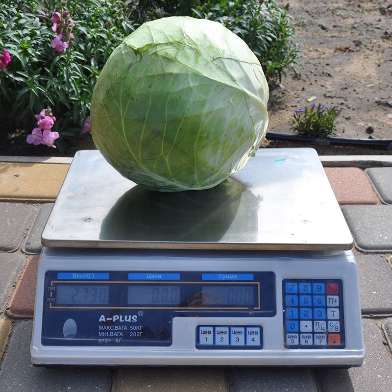 Характеристика плодов – Головка округлой формы, в разрезе белого цвета с нежной внутренней структурой. Листья растения разлогое, зеленого цвета, покрыты обильным восковым налетом. Средняя масса головки – 3-4 кг, кочан в головке почти отсутствует.