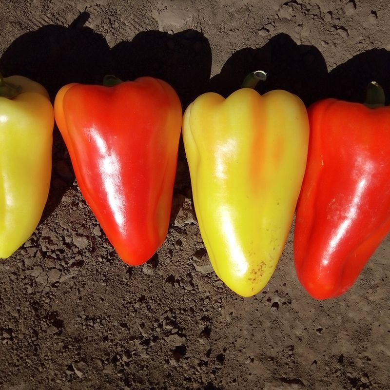 Характеристика плодов – Плоды длинные, конусовидные. Средняя масса плода – 120-150 г, толщина стенки – 0,5-0,7 см. В технической спелости плоды светло-желтого цвета, в биологической – ярко-красного.