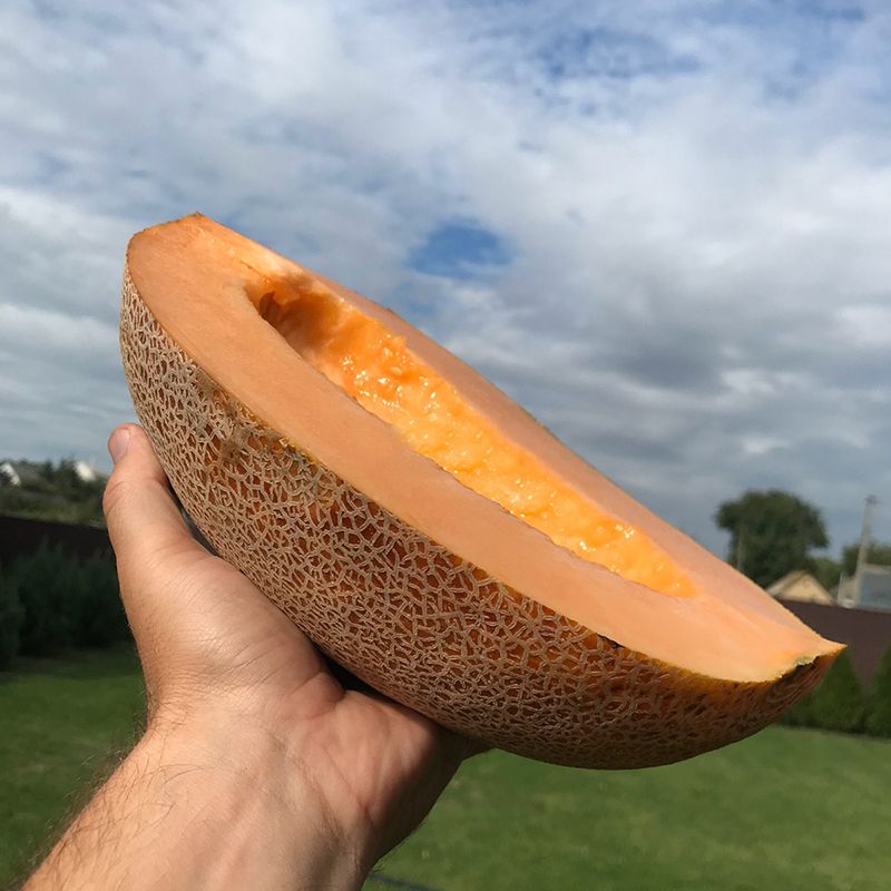Характеристика плодов – На растении 4-5 плодов весом 3,5-4,5 кг. Прочное крепление плодоножки. Плоды овальной формы, выровненные, товарные. Плотная структура, небольшая семенная камера. Хороший оранжевый цвет мякоти. Высокие вкусовые качества – очень сладкая, ароматная и хрустящая. Содержание сахара на уровне – 14-16%!